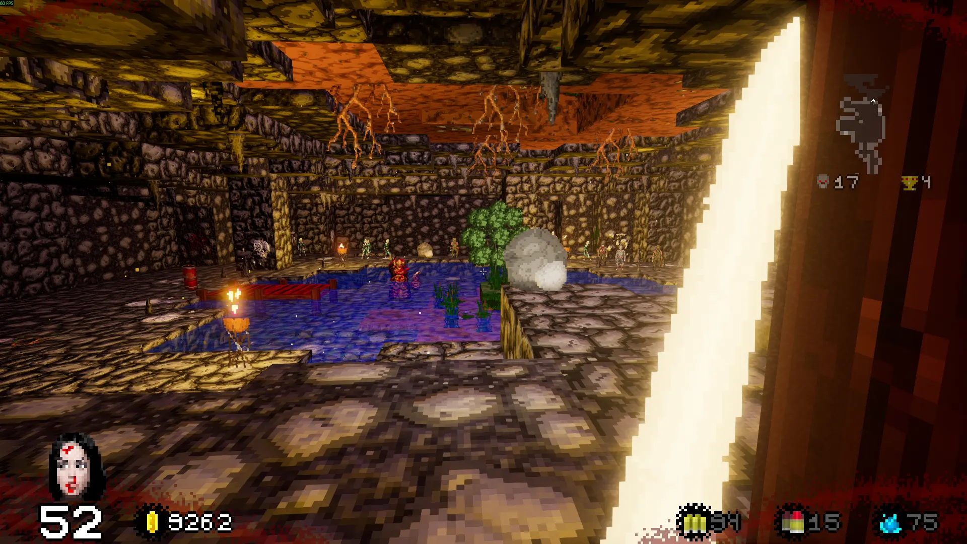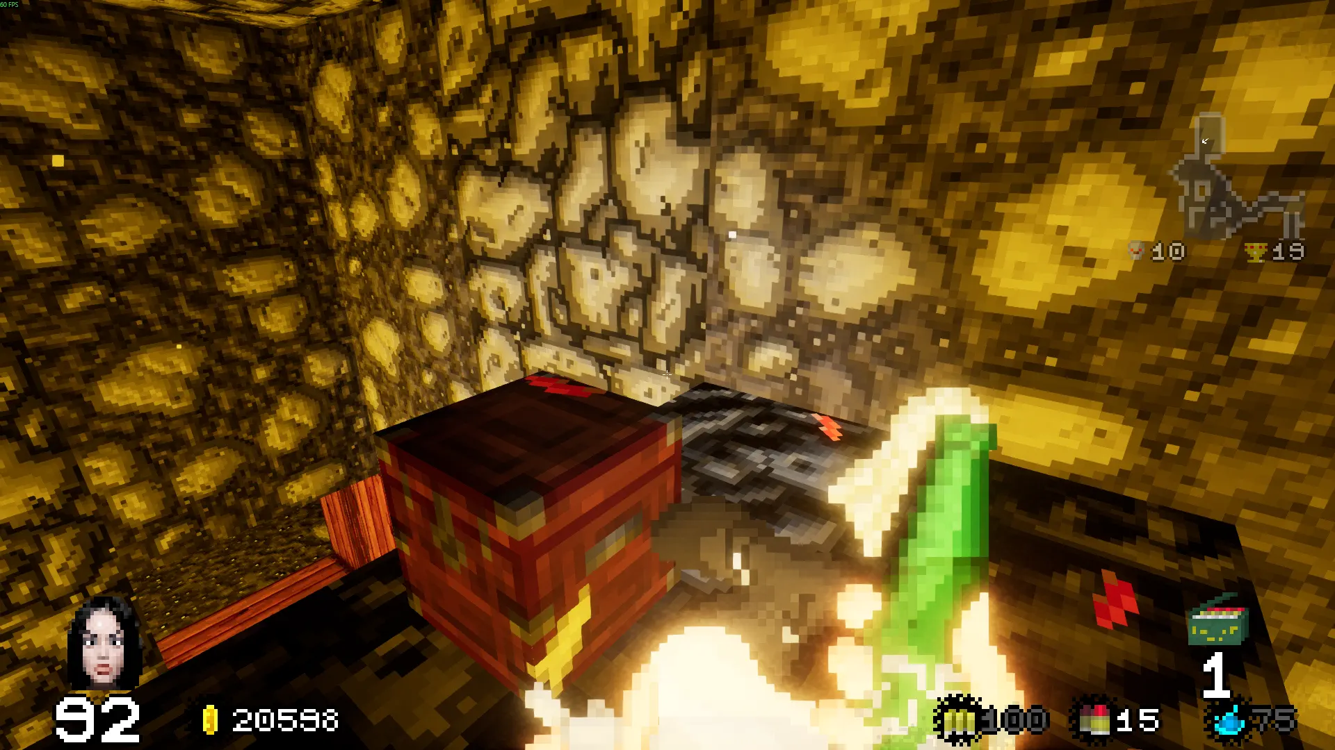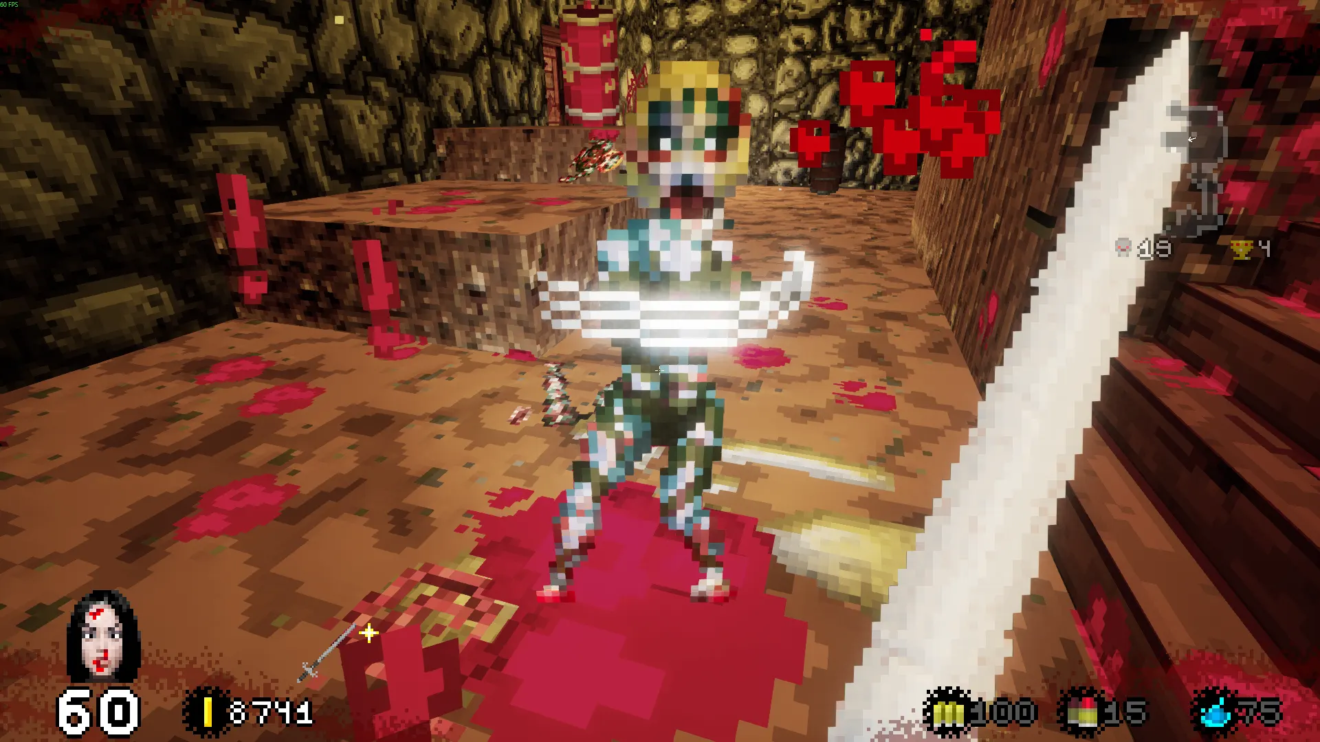 Das Herzstück des Titels sind die Erkundung dieser Traumwelt und die Ballereien darin. Um in die Traumebene zu gelangen benutzt Ihr das Bett der Patientin. Dort angekommen, legt Ihr Euch mit allerlei Zombies, Dämonen und anderem untoten Geschmeiß an. Hier findet Ihr Geheimnisse hinter rissigen Mauern, drückt Schalter und stellt Euch typischen Dungeon-Fallen wie Stacheln aus dem Boden, Feuerfallen etc. – Ihr kennt den Drill. Während Eurer Albtraumtrips werdet Ihr regelrecht unter Loot begraben. Waffen, Munition, Hilfsobjekte und Gold sprudeln Piñata-gleich aus Eurem Kanonenfutter. Letzteres braucht unsere Insassin, um dauerhaft neuer Fähigkeiten und Perks habhaft zu werden. Dafür spielt Ihr dann das Spiel im Spiel. In den ersten Levels sammelt Ihr ein Modul für einen "Game Boy" auf. Euer Inventar wird als GBA-ähnlicher Handheld dargestellt. Darauf könnt Ihr die gefundene Cartridge nutzen, um einen Plattformer im Mario-Stil darauf zu zocken. Auf der Map des Mini-Spiels, die nebenbei stark an "Super Mario Bros. 3" erinnert, gebt Ihr Euer hart verdientes Gold für neue Levels/Perks aus. Schafft Ihr den anschließenden Hüpfspiel-Level erfolgreich, winken Euch dafür Stärkungen wie mehr Lebensenergie, schnellere Bewegung, mehr Waffenslots und so weiter. Gold bekommt Ihr außerdem, wenn Ihr Eure Ballermänner verkauft. An jedem Level-Ausgang müsst Ihr eine Bleispritze wählen, die Ihr weiterhin behalten wollt. Der komplette Rest des Arsenals wird in bare Münze umgewandelt. Auch die Tatsache, nur eine Waffe mitnehmen zu können, macht es nötig, sich tiefer mit den gefundenen Verteidigungsmöglichkeiten auseinanderzusetzen. Das verlangt, sein Gunplay taktischer zu planen – gefällt mir.