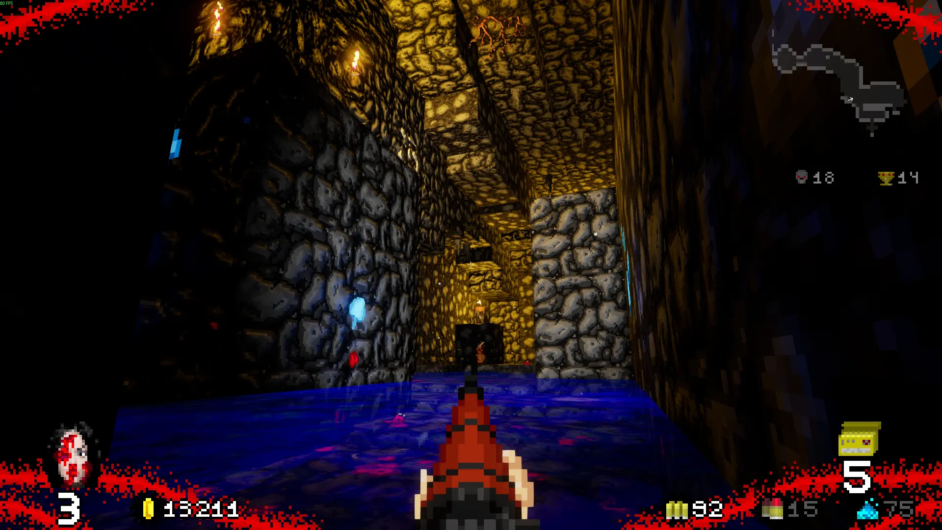 Jedes gute Egoshooter steht und fällt mit seinem Gunplay. Glücklicherweise ist das hier echt gut gelungen. Ihr hüpft und ballert Euch mit präziser Steuerung durch die Alptraumhafte Gegnerschaft. Das Polish der Steuerung befindet sich zwar nicht ganz auf dem Niveau eines Classic-"Doom", ist aber gut genug, um blitzschnell durch die Gänge zu fegen und den Gegnern ordentlich einzuheizen. Von Explosions- und Schusswaffen sämtlicher Kaliber, über Klingenwaffen und Wurfsterne bis hin zu Zauberstäben, Lasern und verschiedenen Hilfsfähigkeiten findet Ihr sehr viele Möglichkeiten, Euren Bildschirm damit rot zu färben. Mein Highlight ist eine abgesägte Schrotflinte, welche Bowlingkugeln wie Schrot verschießt – zu geil! Ein Shout-Out generell für die Schusswaffen im Spiel. Die meisten davon haben praktische Zweitfunktionen wie alternative Schuss-Modi oder sogar nützliche Zooms. Das Trefferfeedback kommt gut rüber, die Knarren-Sounds donnern und die Feinde zeigen nach Treffern so richtig, was in ihnen steckt. Obwohl das Spiel schon ab 16 freigegeben ist, fliegen hier ganz schön die Fetzen – Bildschirmgulasch auf Knopfdruck, so wie es für einen Shooter nach alter Tradition auch sein soll.