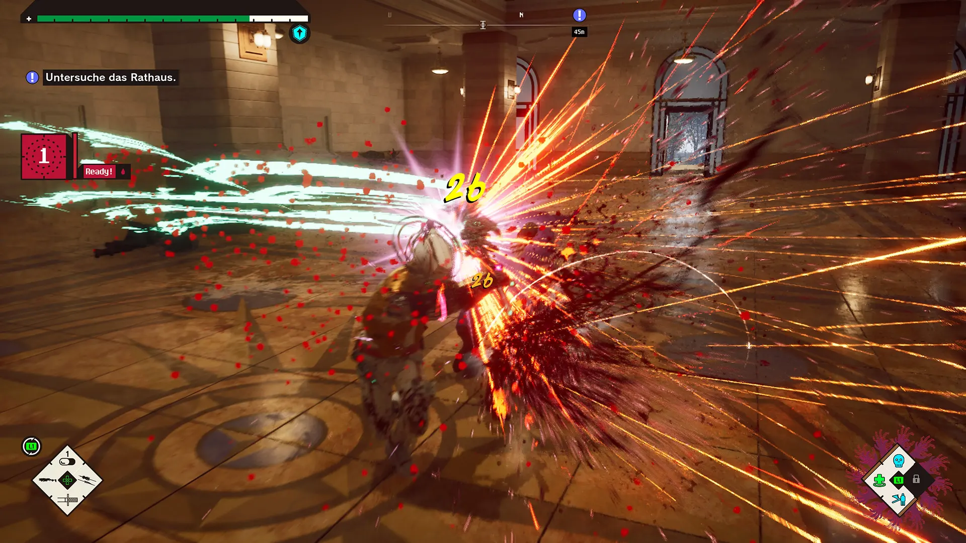 In den Missionen schnetzelt und ballert Ihr Euch durch Zombie-Horden und Dämonenwesen, die stellenweise auch in einem "Silent Hill" gut aufgehoben wären. Romeo landet dabei in verschiedenen Zeitlinien und Orten. Mal in den 1860ern, mal in den 1980ern, mal im Einkaufszentrum, mal im Irrenhaus.