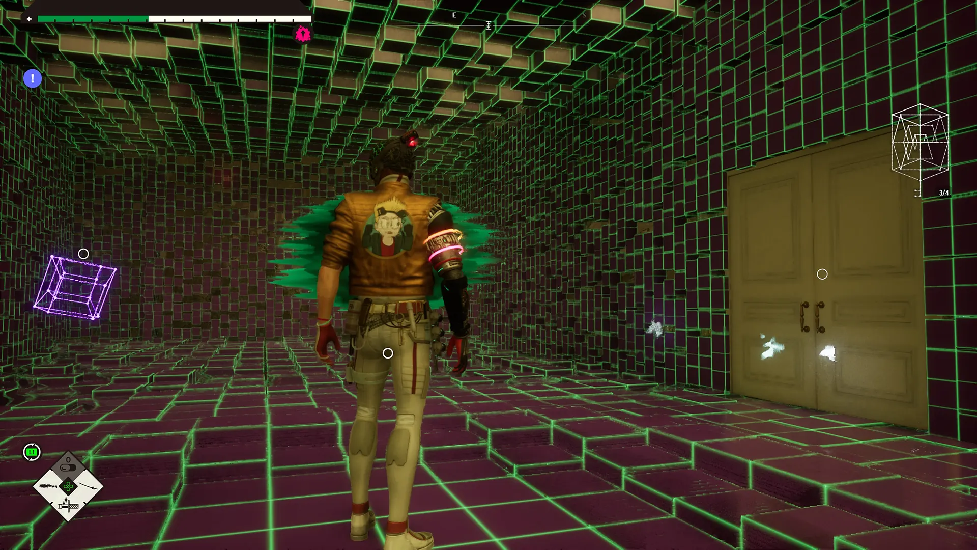 Die Gebiete selbst haben zwei Versionen, die reale Welt und eine Art TV-Voxel-Welt, zwischen denen Ihr durch einen pixeligen Fernseher hin- und herwechseln müsst um voranzukommen. Aufgelevelt wird über verschiedene durchgestylte Mini-Menüs, Waffen werden in einem 8-Bit-Shop verbessert, während Eure Charakterwerte in dem motivierenden Arcade-Style-Spiel „Deadgear Canon Ball“ gesteigert werden, dass an eine Mischung aus "Pac-Man" und "Snake" erinnert.